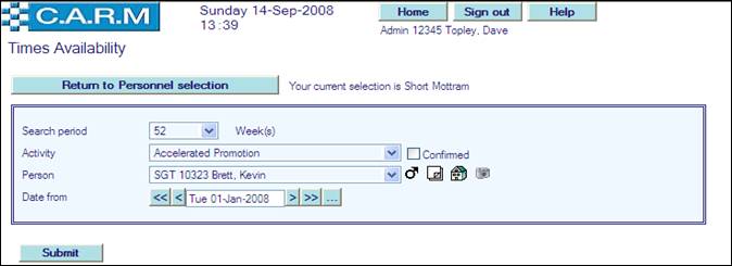 As activities may have different priorities for their confirmed and provisional states, try ticking the Confirmed box to see how that changes the person availability. Click Submit to refresh the display with new criteria.