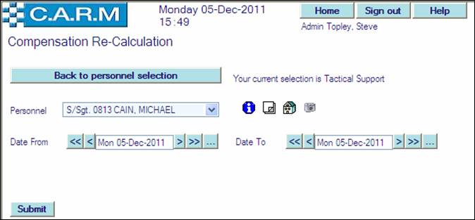 Occasionally, there may be need to recalculate compensation for one or more people, for one or more dates, e.g. If a working condition is changed that affects compensation, the compensation on the appropriate dates will need to be recalculated.