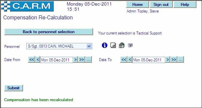 A ‘Compensation has been recalculated’ message will be displayed when the compensation has been recalculated.