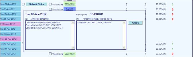 'Number already booked or picked leave' indicates how many people from your particular group of personnel have already made their picks for those days.