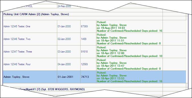 Grouping of personnel is determined by the organization structure and by cover ranks as defined by the CARM System Administrator. Typically it could be, for example, all Officers within a platoon, or all Sergeants within a division. (See Picking Units)