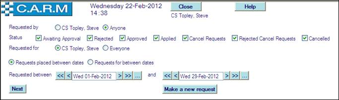 Requests for others may be made here e.g. sickness, to attend court or a training course.