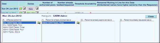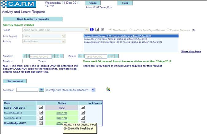· Click Number already booked/requested . “Already booked” means the leave is approved and has been booked on the Duty Plan; “Approved annual leave” means the leave is authorized but not yet applied.