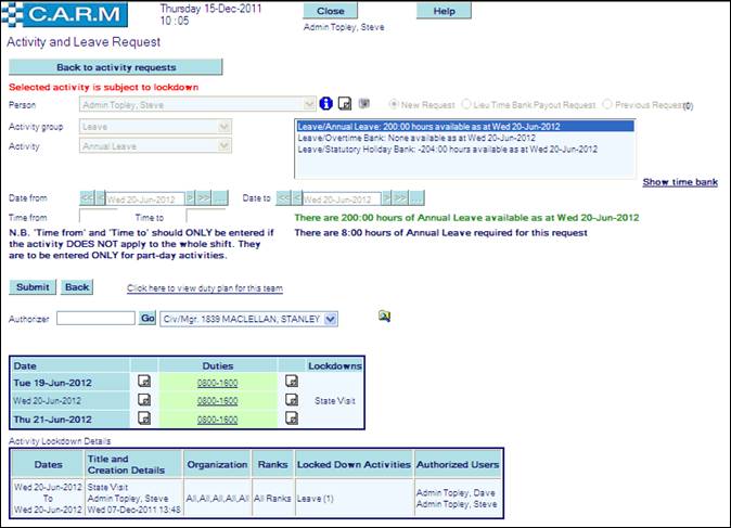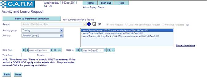 Whenever leave requests are made that involve a single date (‘date from’ is the same as ‘date to’), the partial shift option is available and, if used, a check is made to ensure that the entered times fall completely within any working time on that day. If it doesn’t, an error message is displayed and the user cannot submit the request. Select Activity group from the drop down.