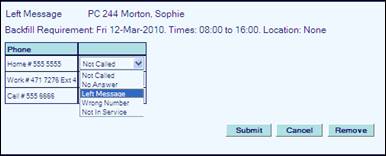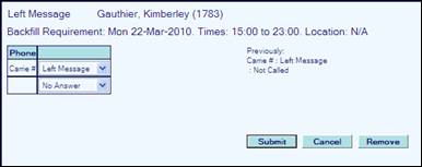 Enables line managers to record messages left for the person selected to backfill if they are not immediately contactable.