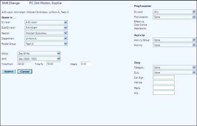 Today: Current day shift details that together with Contact details enables contact to be made quickly with the selected person.