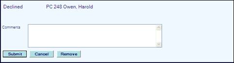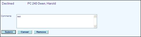 · Click Submit to decline. The Message/Accept/Decline buttons will change to red to indicate selection is not permissible.