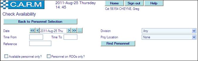 · Check Available personnel only? and/or Personnel on RDOs only?