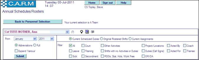 · The annual roster for Cst Ann NOTHER in Abbreviations view.