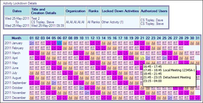 · Hover cursor over shift details shows all details for that shift including a Reference such as 12345A-1 on Various for Cst Ann NOTHER on Thurs 21-Apr-2011 (up to 10 characters recorded against tours/activities displayed in various Enquiries and reports).