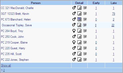 · Click the underlined number against the person required.