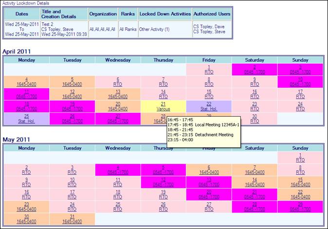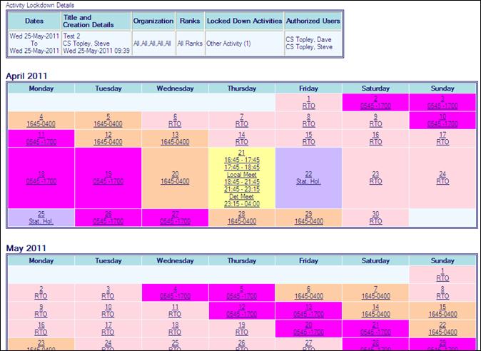 · There are multiple activities on Thursday 21-Apr-2011 for Cst NOTHER, Ann (in particular Local Meeting and Detachment Meeting).