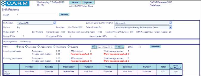 · Enter Search Shift Pattern Title or * wild card for viewing.