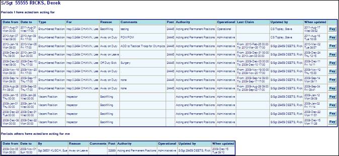 View periods where you have 'acted up' for a more senior position and where others have 'acted up' for you.