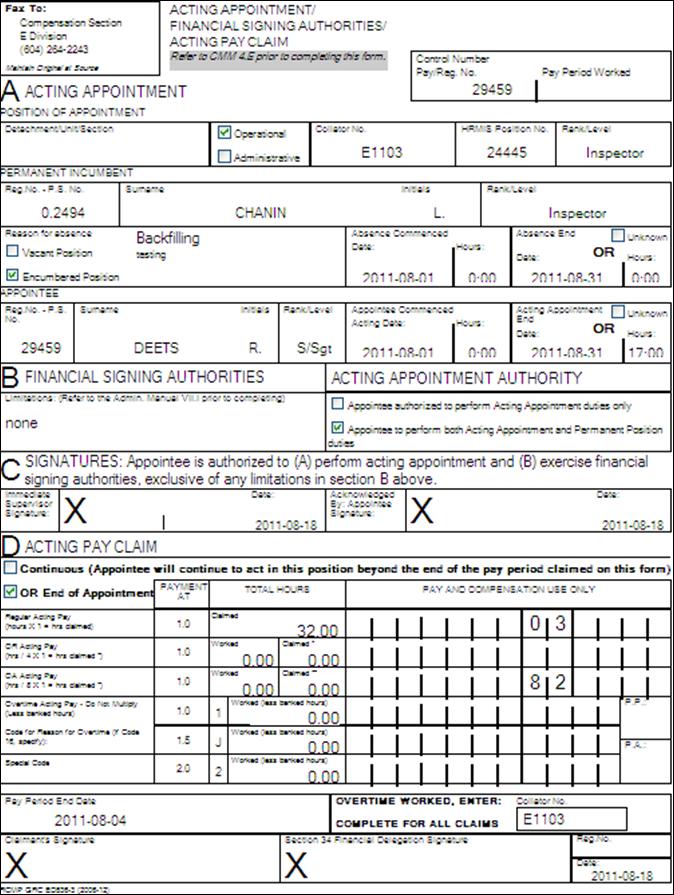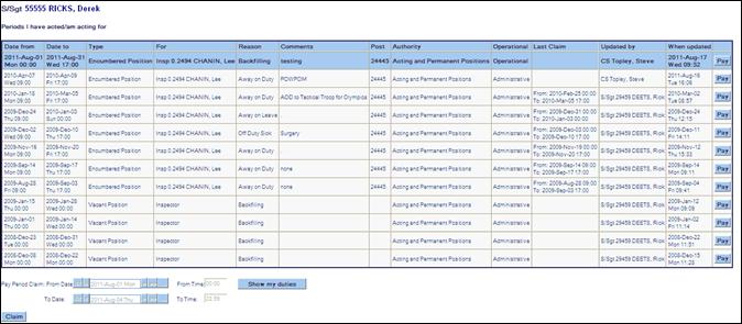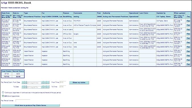 The ‘Pay’ button only applies for the RCMP Acting Pay Claims and has been suppressed for all other clients. |
