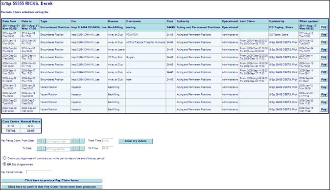 To produce an acting pay claim, click on the Pay button against the appropriate acting period.