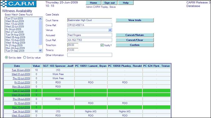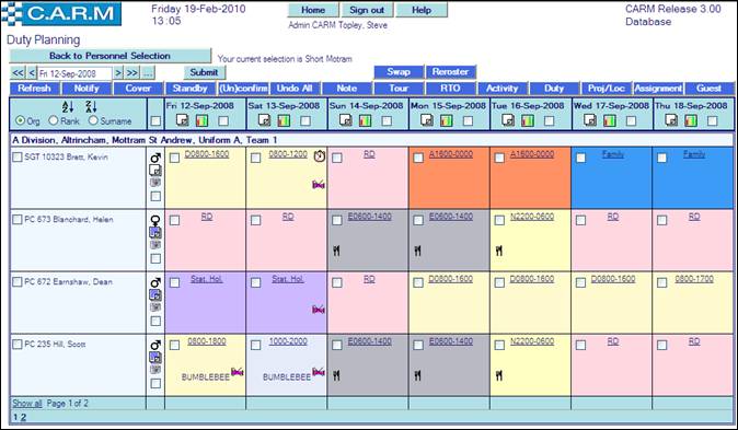 Personnel selected on the Duty Plan, Activity Scheduling, Request Application, Witness Administration etc. will automatically be presented in the Select Person list.