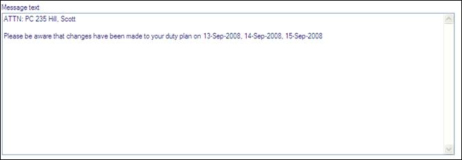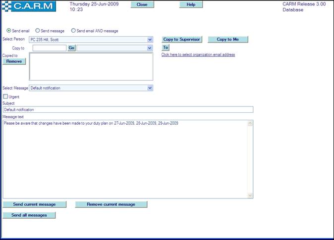 Tip – If the message text box does not show the individuals name, those in the Copied to list will not know who is affected by the change. This can be set through Notifications Maintenance (please see the CARM Administrator for details) or added manually at the point of sending the message. |