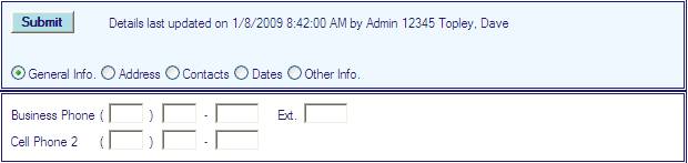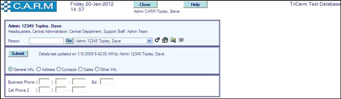 There are five areas with information. Areas where a person has access will be provided as options. These areas are: