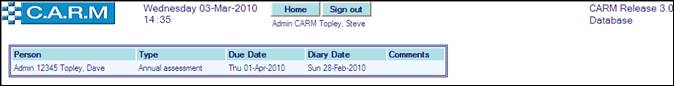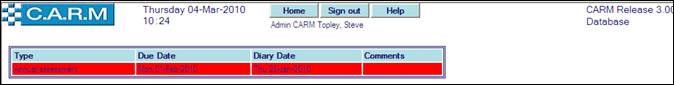 On Home Page a red Diary Dates (n) button will appear when the user has any diary dates due for action and not yet completed.