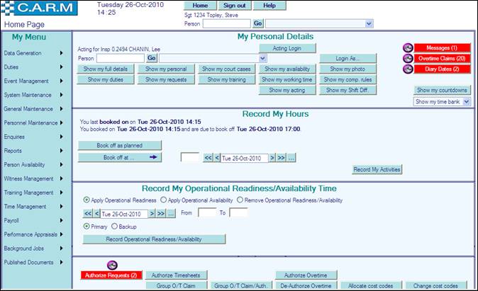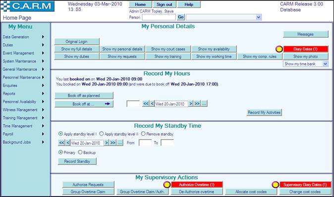 On Home Page a red Supervisory Diary Dates (n) button will appear when the user has any subordinates that have any diary dates due for action and not yet completed.