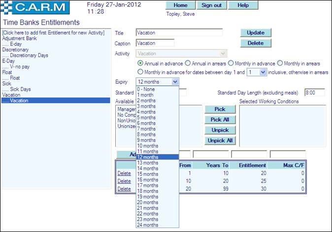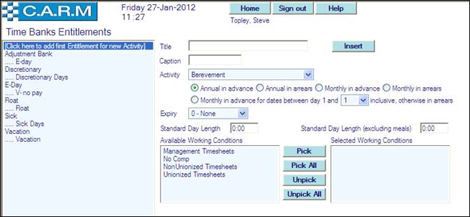 These entitlements form Time banks for personnel and will be credited at the appropriate point of the year depending upon each Persons entitlement settings. (See Adding an Entitlement)