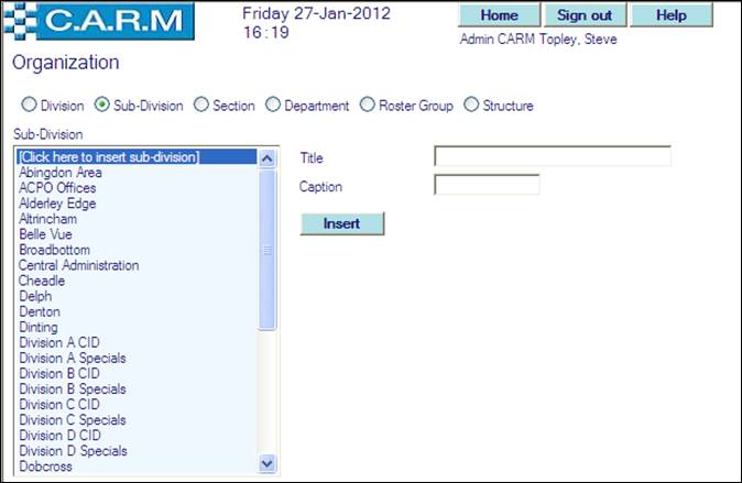 Change any details of a Division, Sub-Division, Section, Department, Roster Group or Structure as required.