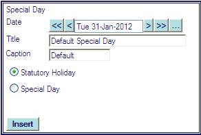 · Click Statutory Holiday or Special Day appropriate to the day being created.