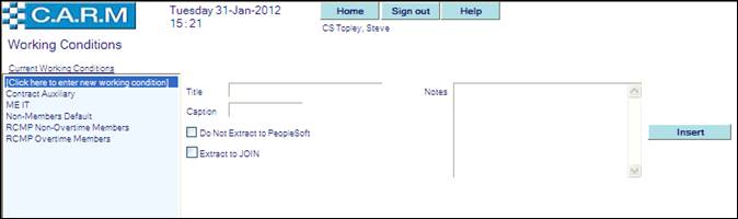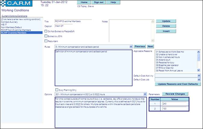 Changing details of a Working Condition e.g. to add further explanatory Notes or to change Rules Options.