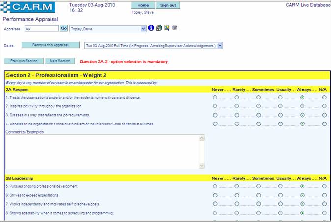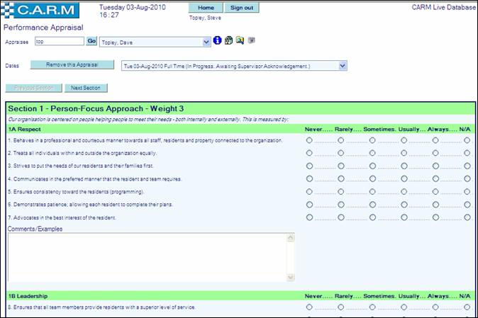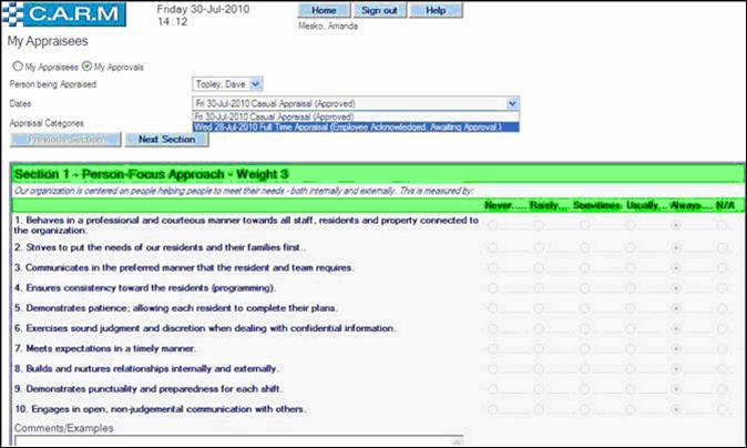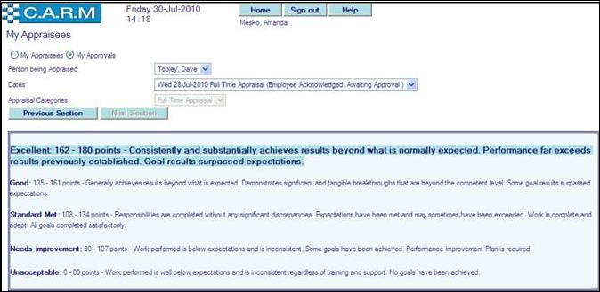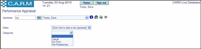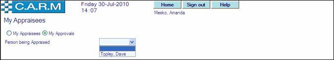 from the drop down list of Appraisals for viewing In Progress. Awaiting