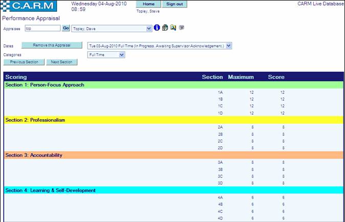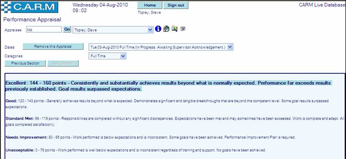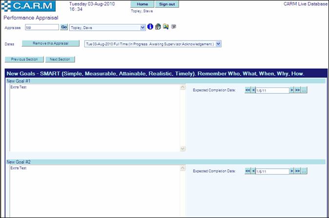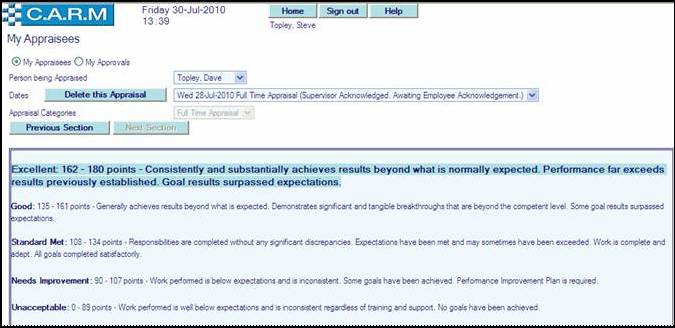 Supervisor Acknowledgement, In Progress. Awaiting Appraisee