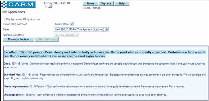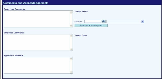 the Appraiser will compile the Performance Appraisal Questionnaire, enter an Approver and will acknowledge the