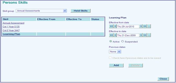 · Select Home Page> Personnel Maintenance > Person Skills and select the people to suspend skills for.