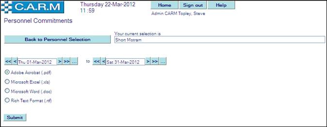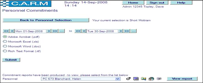 Reports all the changes made to the selected personnel’s scheduled activities. It produces one report per person. If only one person was selected, then the report is automatically downloaded for viewing. If more than one person was selected, then select the appropriate person from the drop down list and click on the View Report button to download that persons report.