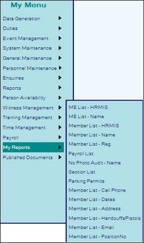 Client developed reports are accessed through the My Reports option from the home page. These reports can be incorporated by the System Administrator (See Configure Client Reports)