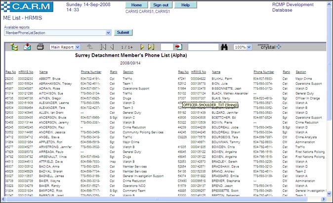 CARM allows for client developed Crystal reports to be built into the menu system with access control through the standard User Profile functionality.