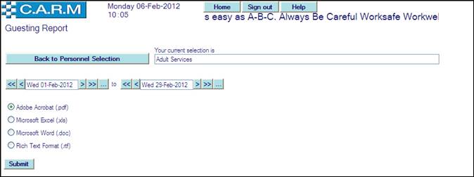 · Select personnel/teams/area of organisation to be reported.