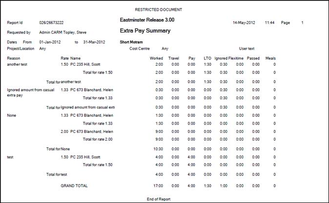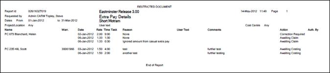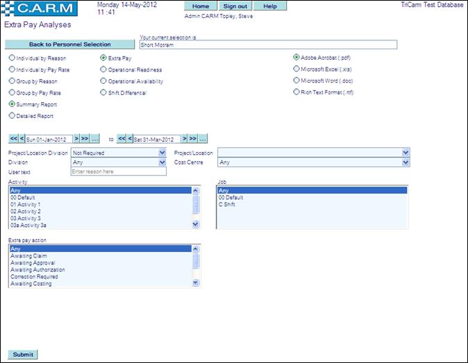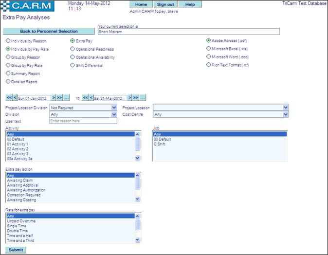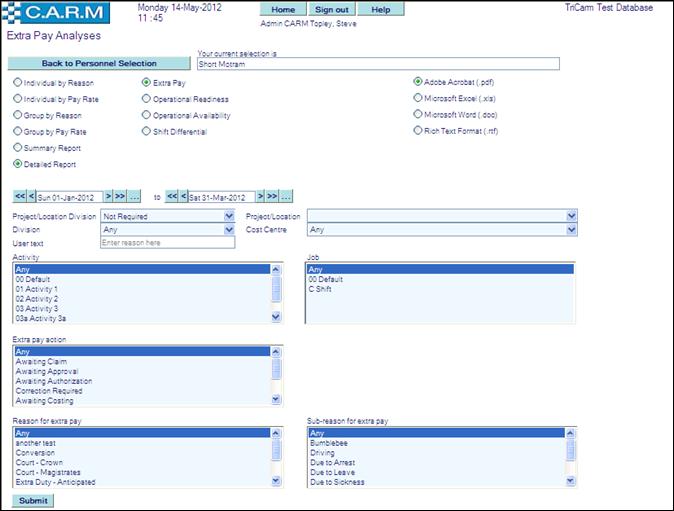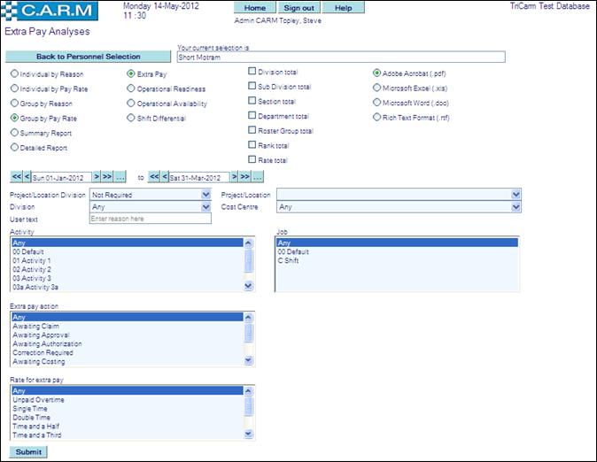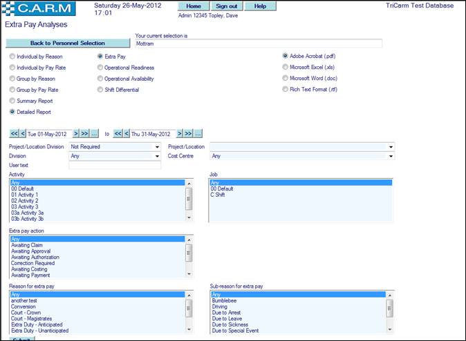 · Select Cost Centre to analyse Extra pay for a specific Cost Centre (Collator) if required or leave as Any