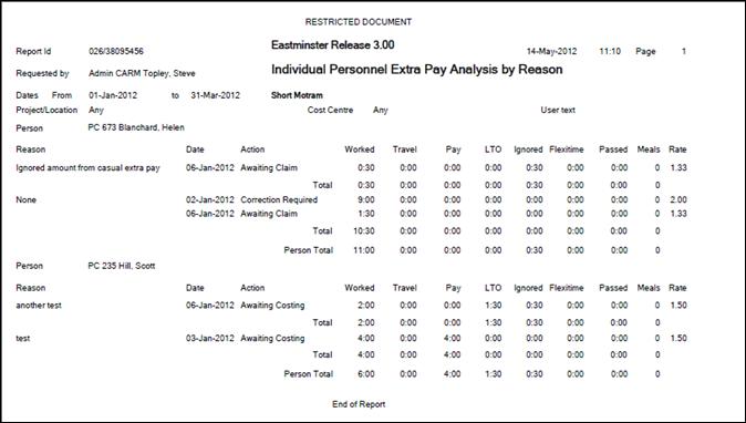 e.g. Individual Personnel Extra pay Analysis by Reason