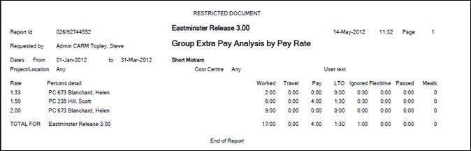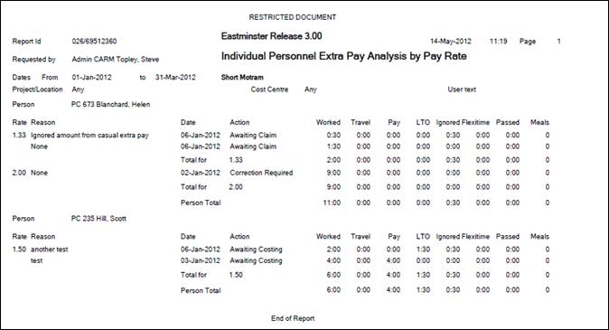 e.g. Individual Personnel Extra pay Analysis by pay rate