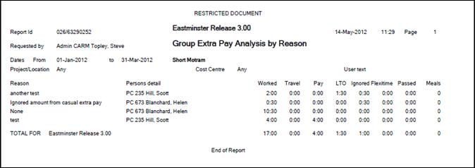 e.g. Group Extra pay Analysis by Reason with department totals.