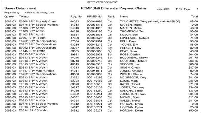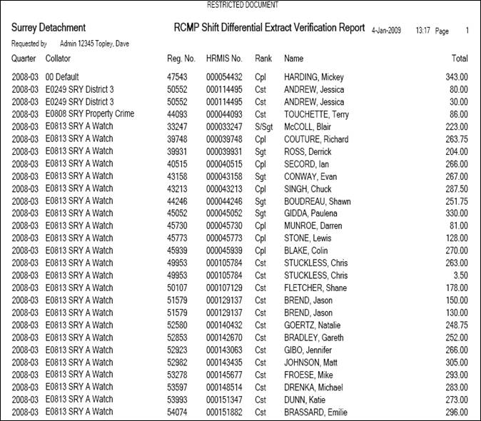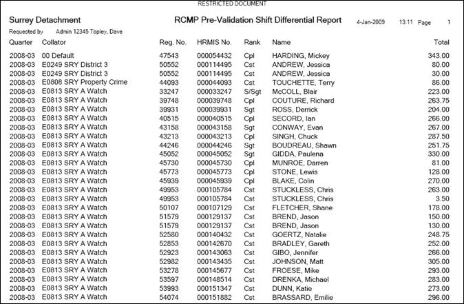 A Shift Differential report will be produced