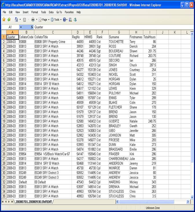 · Select Payroll > ShiftDiff. Extract