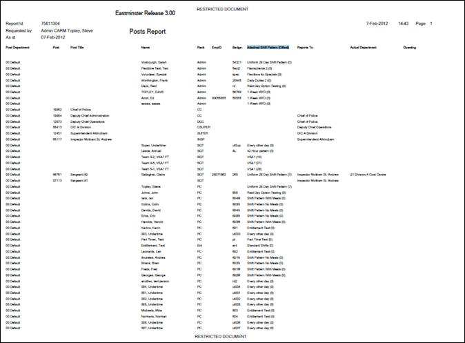 Attached Shift Pattern (Offset): Post’s incumbent, working pattern.