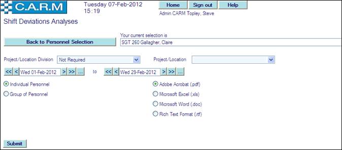 ˇ Select a Project/Location Division to analyse all shift deviations for a specific Project/Location. Otherwise, leave the Project/Location Division selection of Not Required if the Project/Location setting is irrelevant.