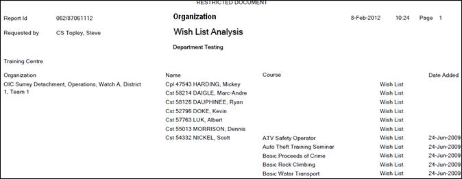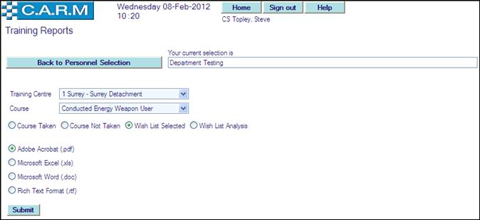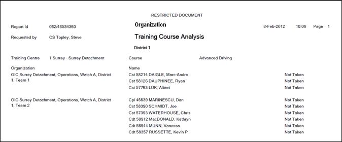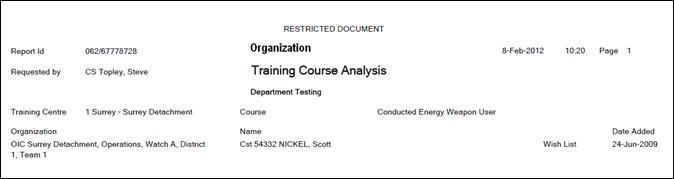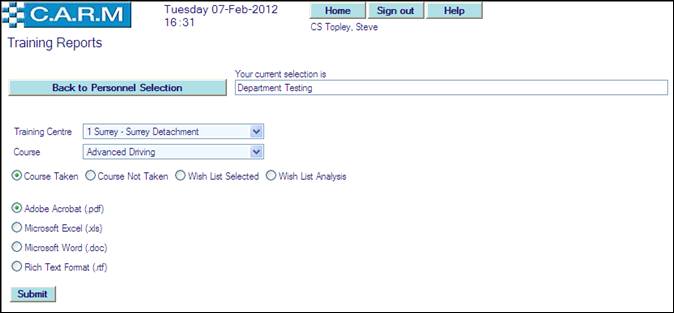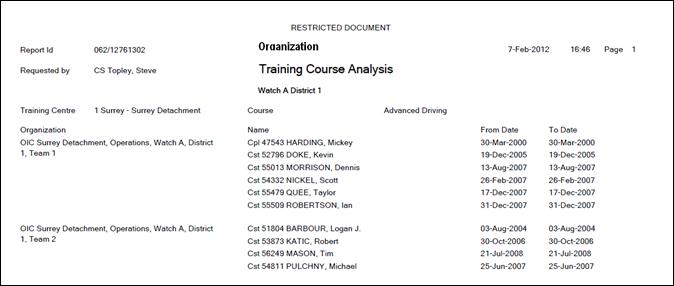 These reports analyse training courses held by personnel. Further selection criteria are dependent upon the training report type requested. There are 2 types of training report available.