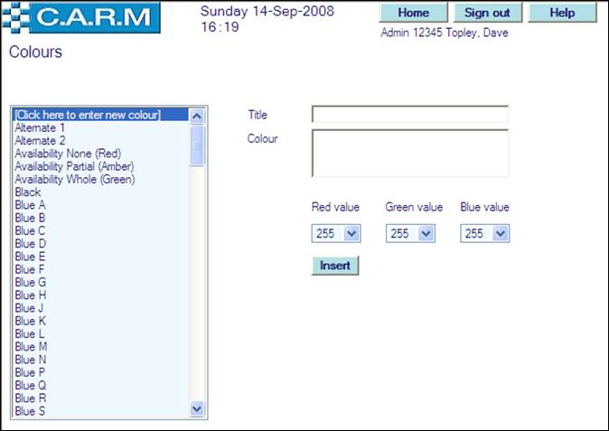 Avoid, where possible, changing any colour that already has a name e.g. Confirmed Activity as these are already used to address specific needs. Click on a name that has a colour as its identity e.g. Green K, Blue T as it is unlikely to have been assigned to anything else. To save time, choose a colour near to the one required and amend the Red, Green and Blue values to suit. Remember to change the name so it is easy to find and use later. |