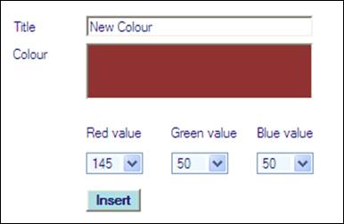 · Change Red, Green or Blue colour values as required. The chosen colour will be displayed in the colour box. e.g.