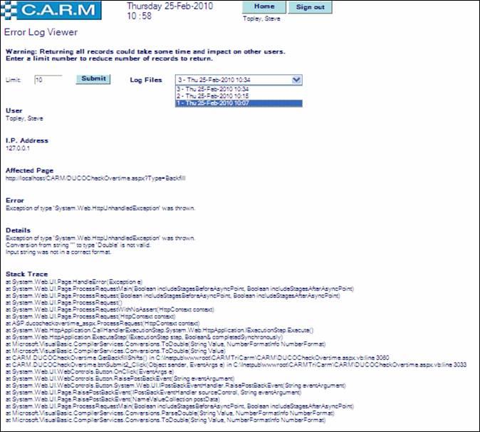 This Function enables CARM administrators to view detail of the error for prioritization and rectification.
