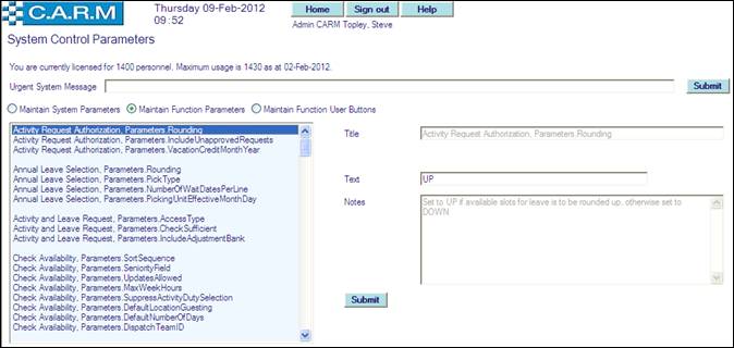 Looks at the parameters set on the system. They determine what actions to take in certain situations within CARM e.g. Average Hours Horizon states over how many weeks required to calculate the average hours worked for European Working Time Regulations purposes.
